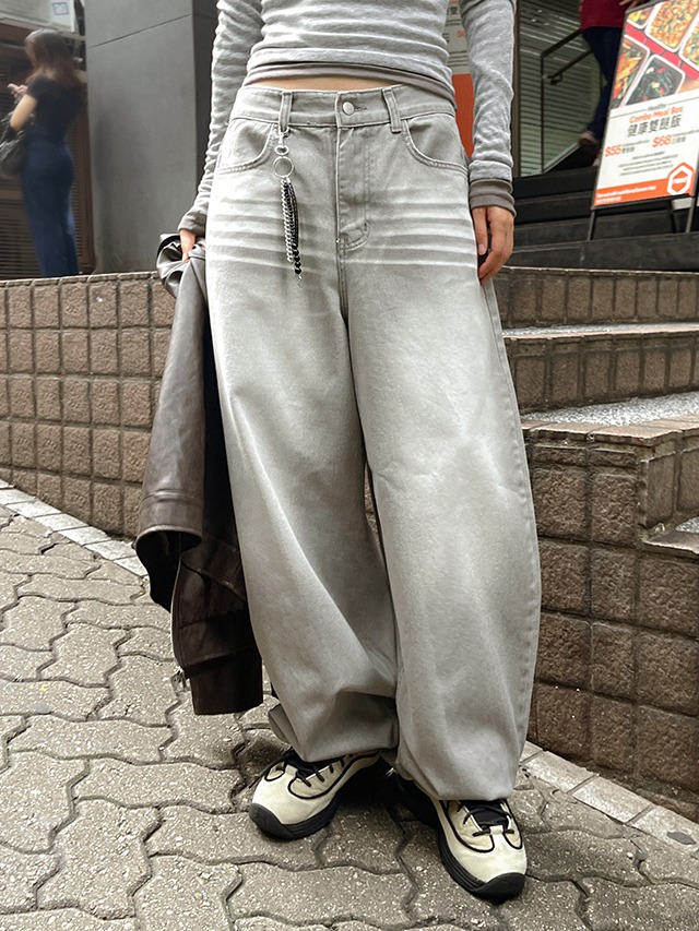 S-L 샌디고 캣브러쉬 빈티지 워싱 데님 벌룬 팬츠