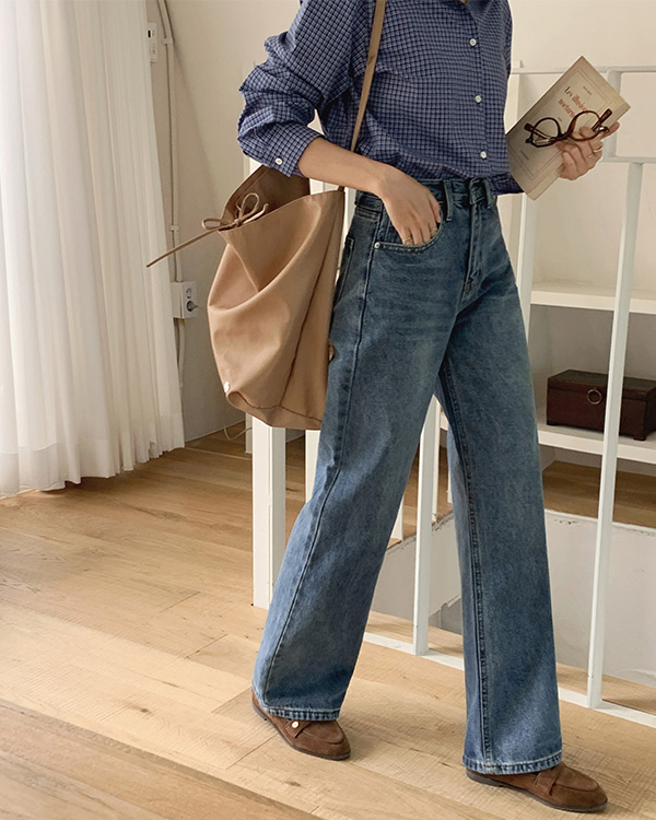 [군살커버]멜포네 워싱 와이드 데님 팬츠