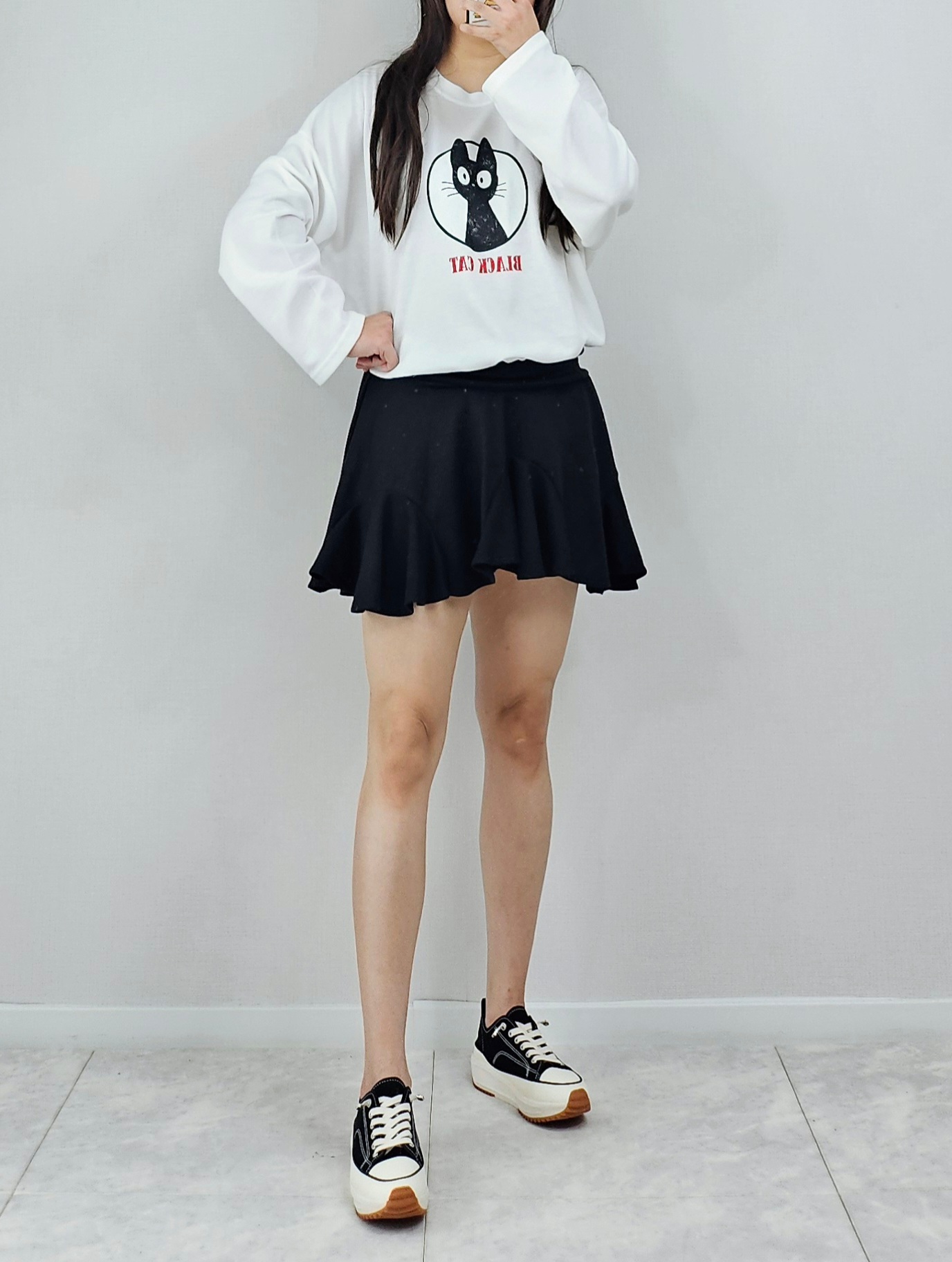 [44-77],[💙여름신상💙] 미니스커트 허리밴딩 치마 프릴 면 여리여리 77사이즈 사계절 통통녀치마 코디 면