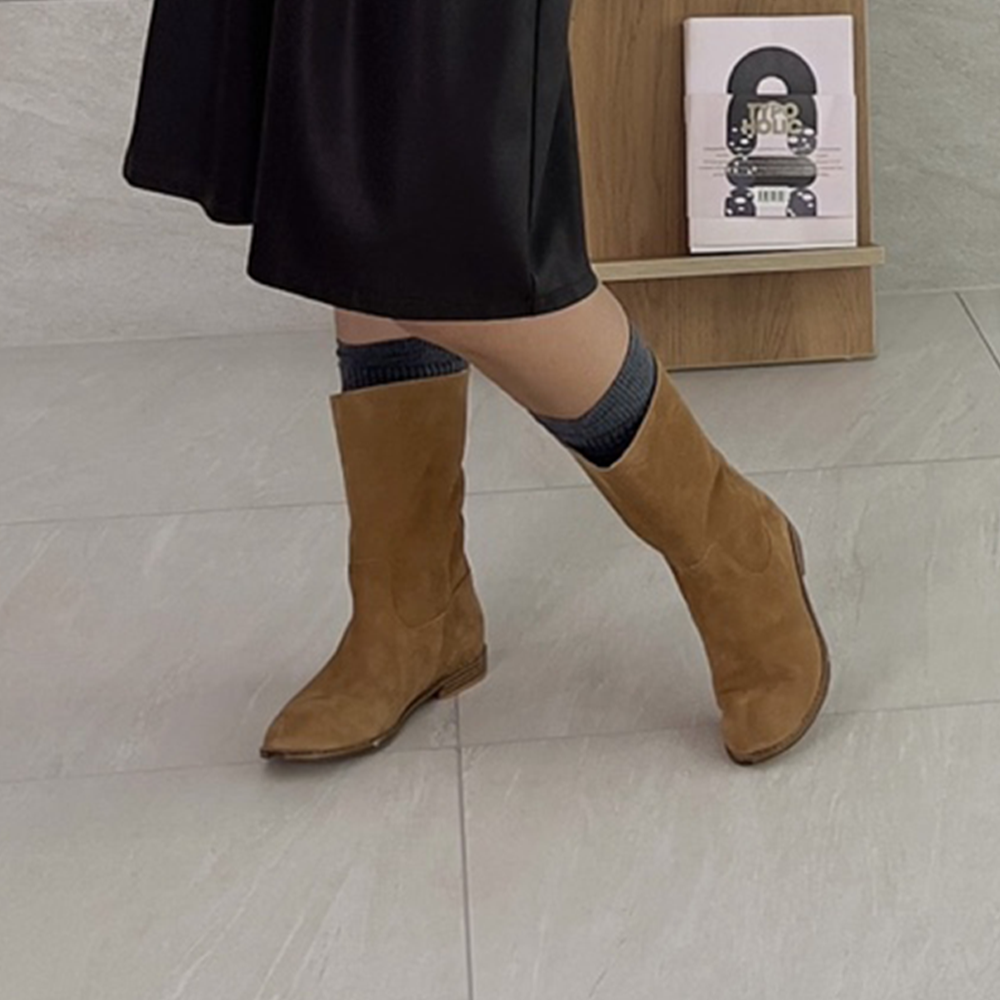 첼시부츠 갈색 미디 부츠 소가죽 미들 부츠 통넓은 스웨이드