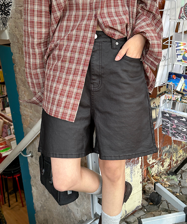 문샷 코팅 스판 하프 팬츠
