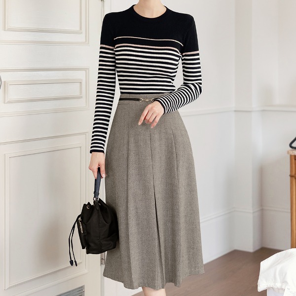 오트리아 골드비죠 헤링본 핀턱 플리츠 스커트