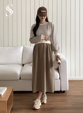 [S-made]임부복*단가라맨투맨레이어드 임산부원피스