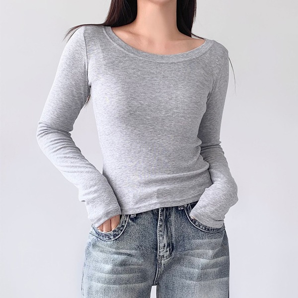 기모텐션 유넥티셔츠)U넥/긴팔티셔츠/폴리면/스판/기본티셔츠/긴소매/얇은기모면/베이직/기본티셔츠/흰색/브라운/회색/검정/밤색
