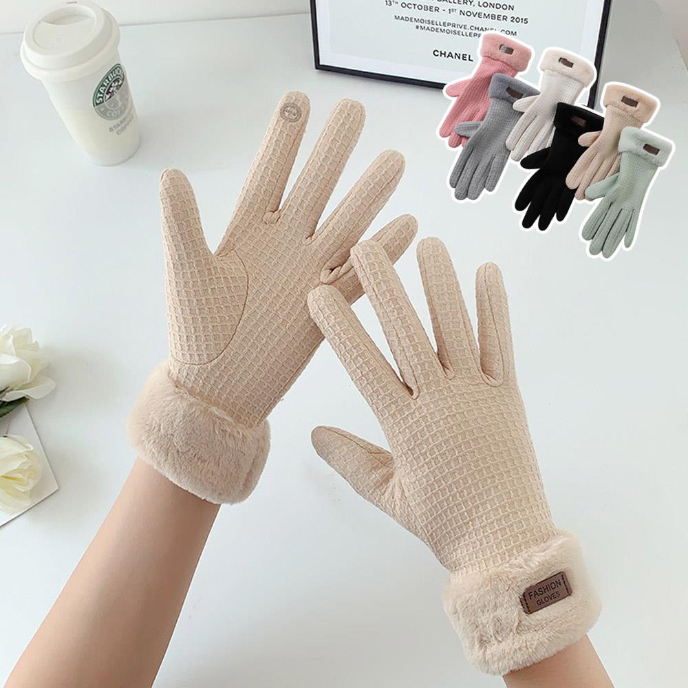 [VY] 여자 와플 털뽀송 손가락 장갑_A31576