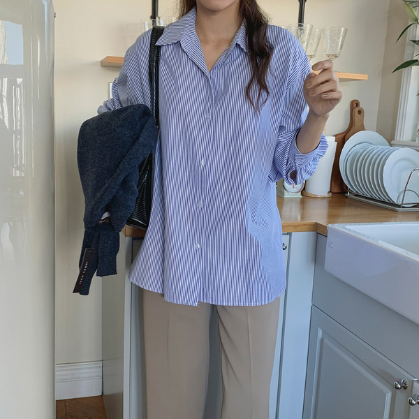 스트라이프 긴팔 셔츠 남방 봄 가을 캐주얼 학생 오피스 데일리 베이직 심플