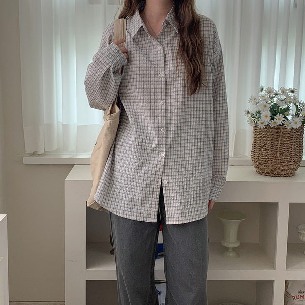 체크 믹스 긴팔 셔츠 남방 베이직 기본 봄 가을 학생 캐주얼 데일리 오피스
