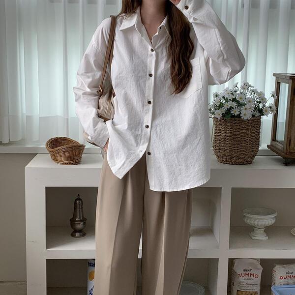 기본 무지 우디버튼 셔츠 남방 흰색 화이트 학생 캐주얼 캐쥬얼 남방 데일리 3color
