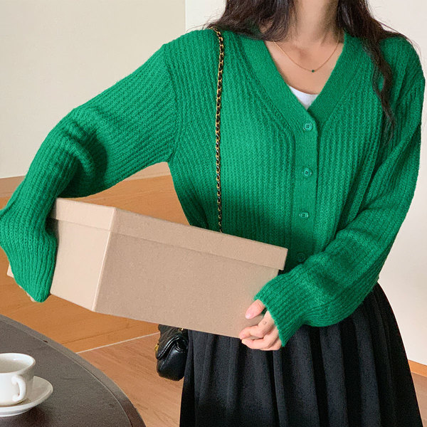 베이직 브이넥 루즈핏 니트 긴팔 가디건 봄 가을 무지 골지 데이트룩 오피스룩 데일리