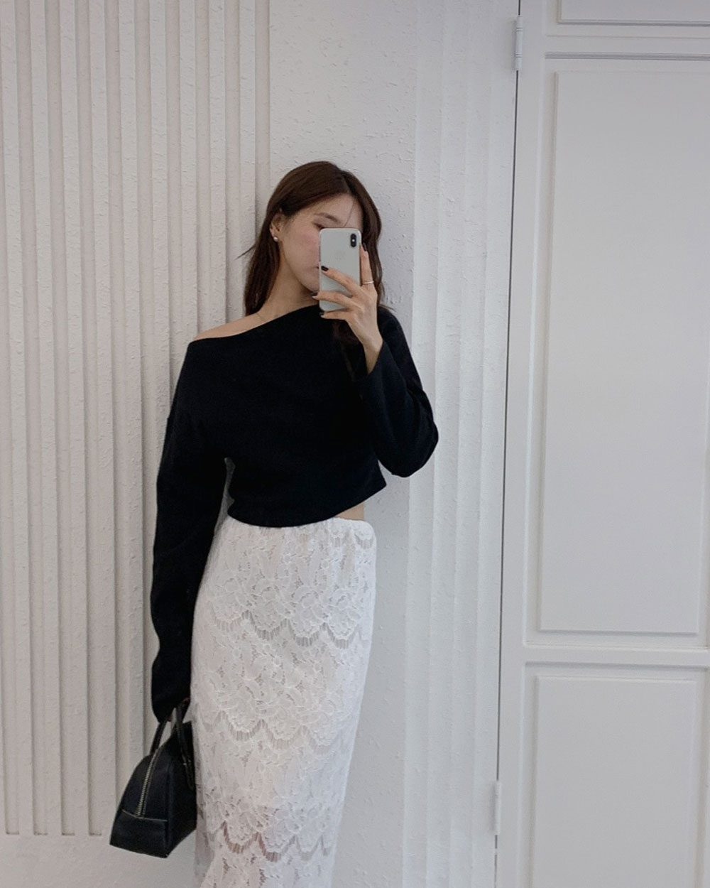 레바 언발 오프숄더 티 -블랙