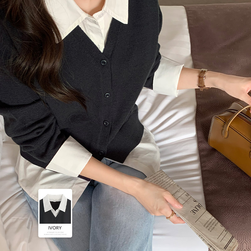 주문폭주 [셔츠일체형] 셔츠 레이어드 니트 가디건 니트가디건 셔츠레이어드가디건 데일리룩,데이트룩,출근룩,모임룩,하객룩 cd3184