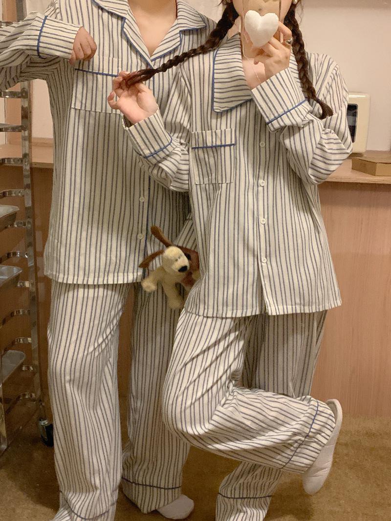 (커플잠옷) (베른잠옷세트) 여성잠옷 남성파자마 가을 긴팔 스트라이프 2컬러 투피스