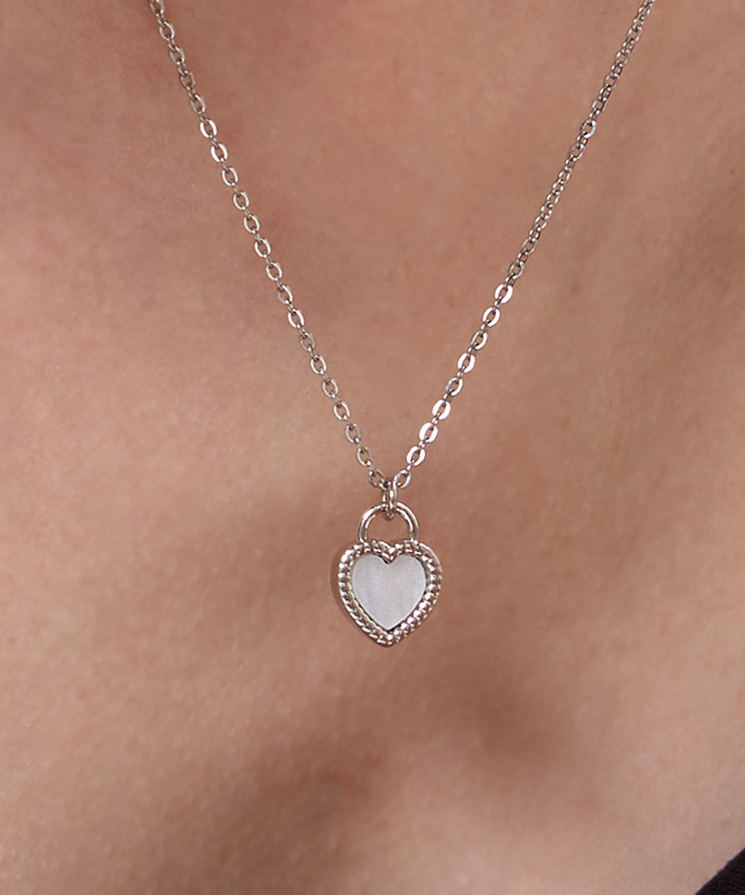 몽 하트 자개 빈티지 네크리스