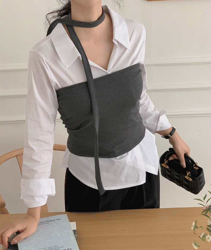 [타이Set]써미 스카프 골지 뷔스티에 튜브탑