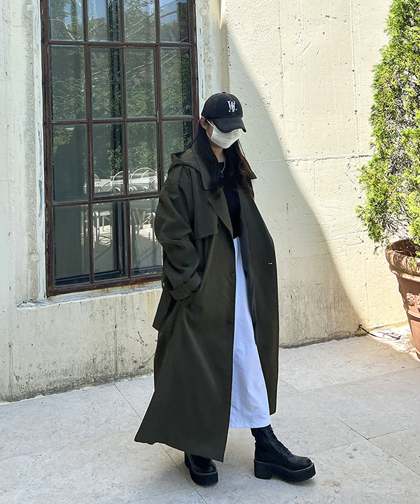 [55-88/롱기장] 남녀공용 오버핏 봄 가을 후드 맥시 롱 트렌치코트 야상 간절기 아우터