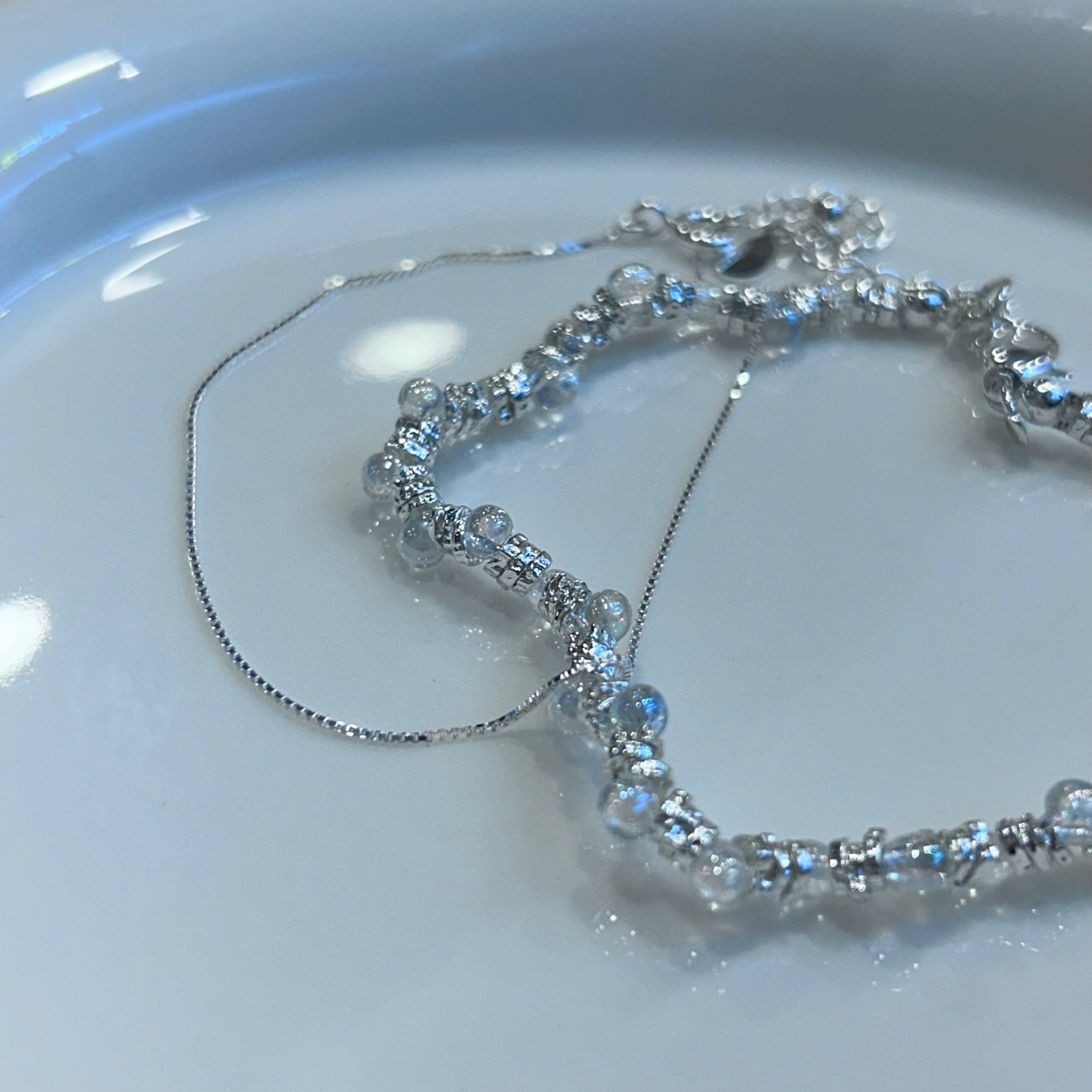 [세트 상품] 실버925 뱀줄 버블 유리알 오로라 실버 팔찌