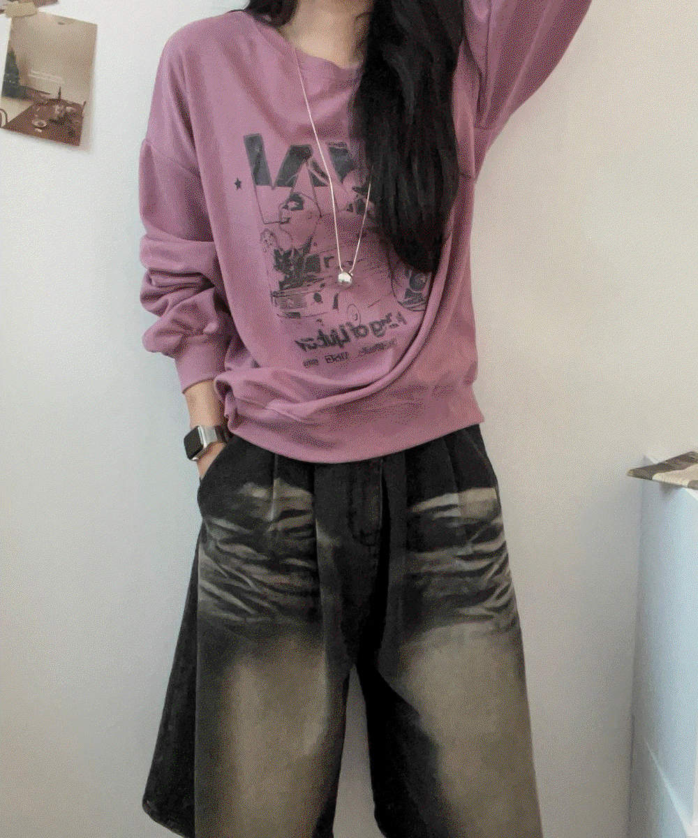 힙무드/y2k바이올렛빈티지벌룬핏맨투맨