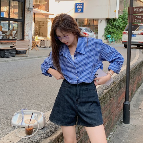 [당일출고] 홍대추 오버핏 블루 체크셔츠 남방 봄 가을 루즈핏 빅사이즈 레이어드 셔츠