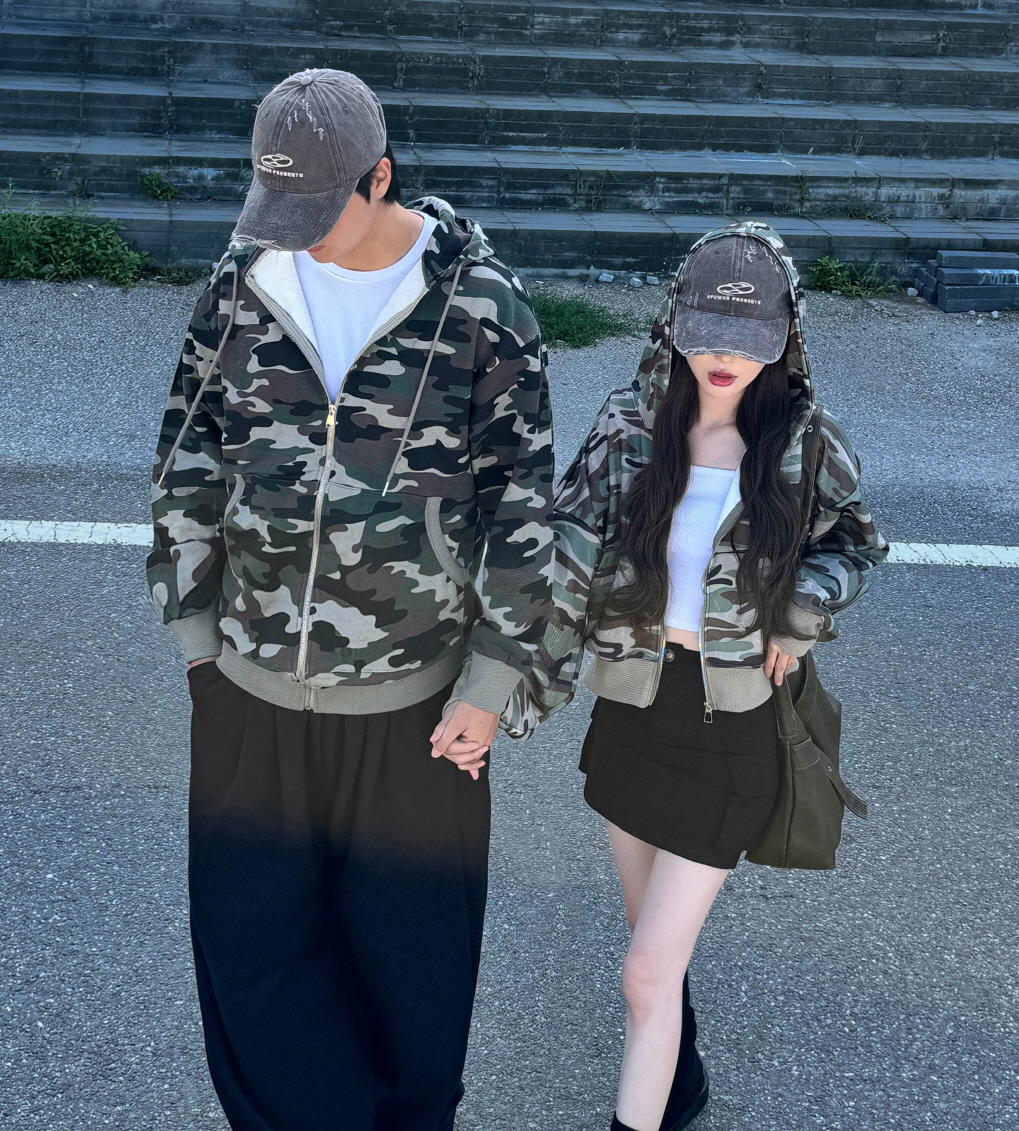 단독✨[크롭&남녀공용]카모 후드 집업 커플룩 시밀러룩 가을 겨울 크롭 후드티 남녀공용 오버핏 카고 스커트 핀탁 밴딩 롱팬츠 트레이닝 세트 셋업 꾸안꾸 힙 스트릿 데이트룩