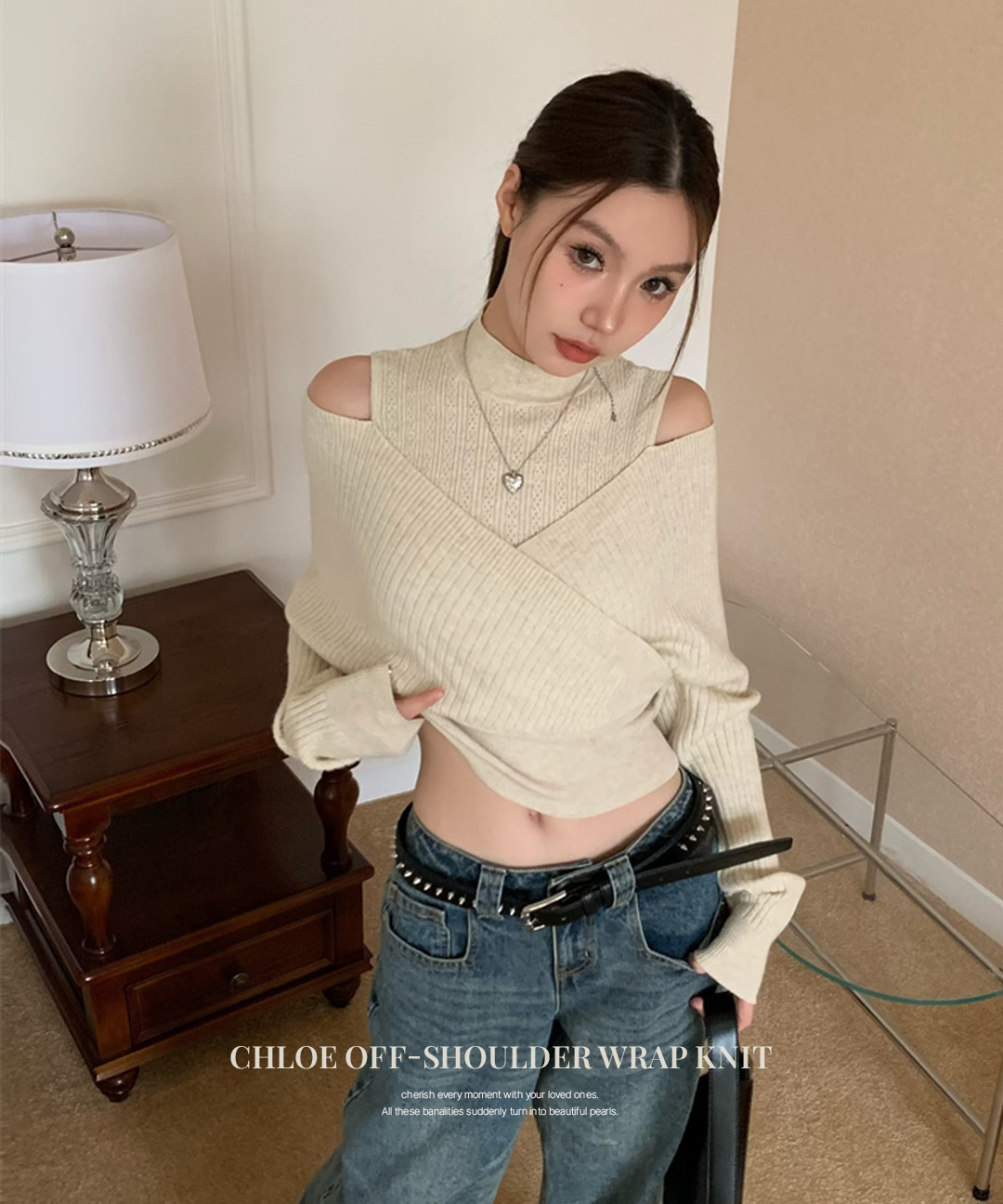 [2col/여리핏] 클로이 오프숄더 폴라 랩 니트