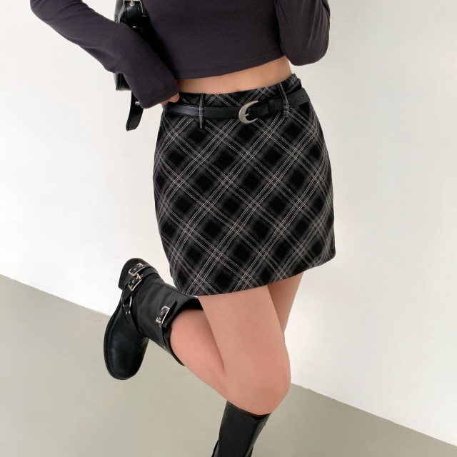 [벨트set!/속바지안감] 썸미업 긱시크 빈티지 하이웨스트 A라인 체크 미니 스커트