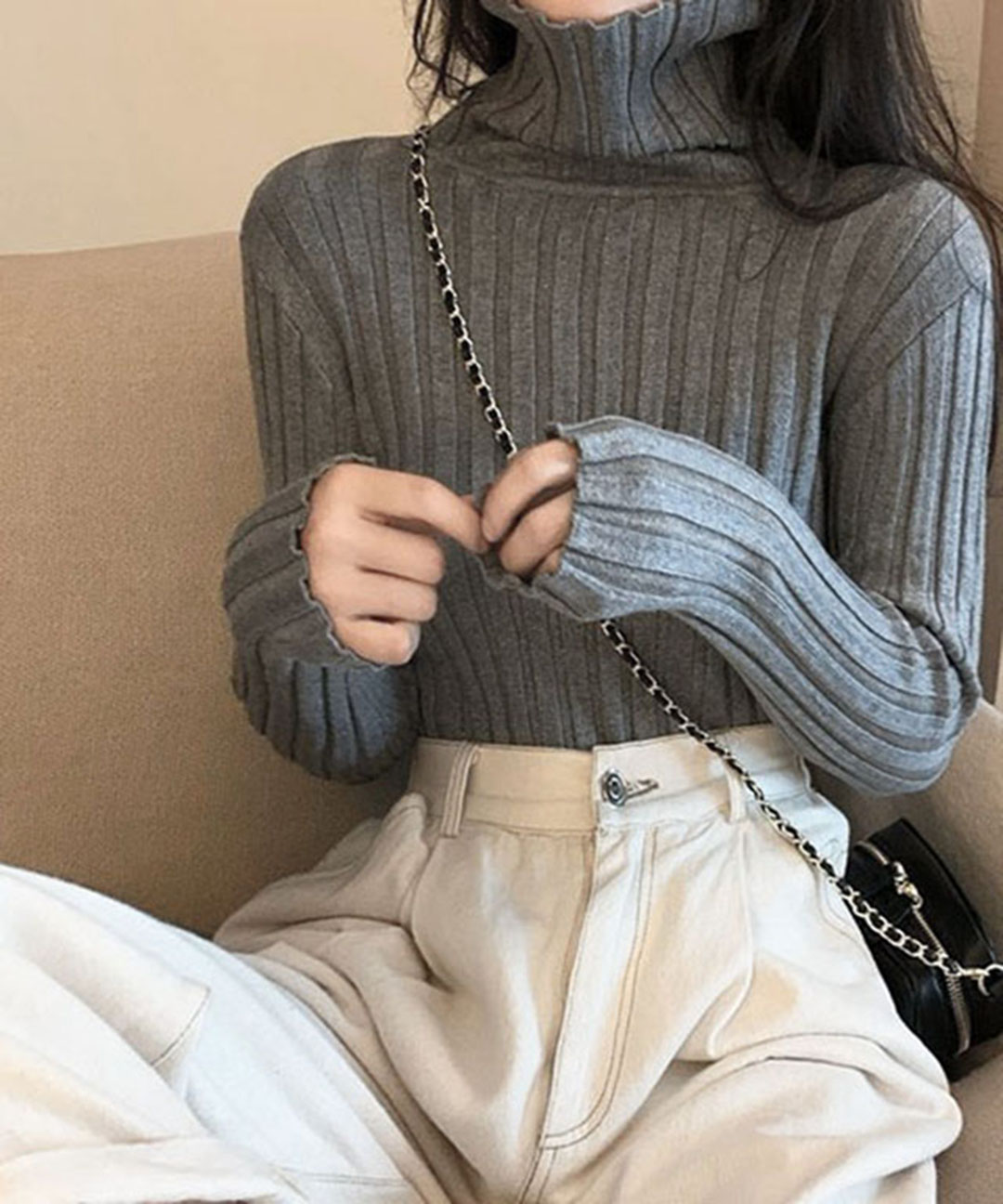 [6컬러] 릴랙스 골지 목폴라 니트