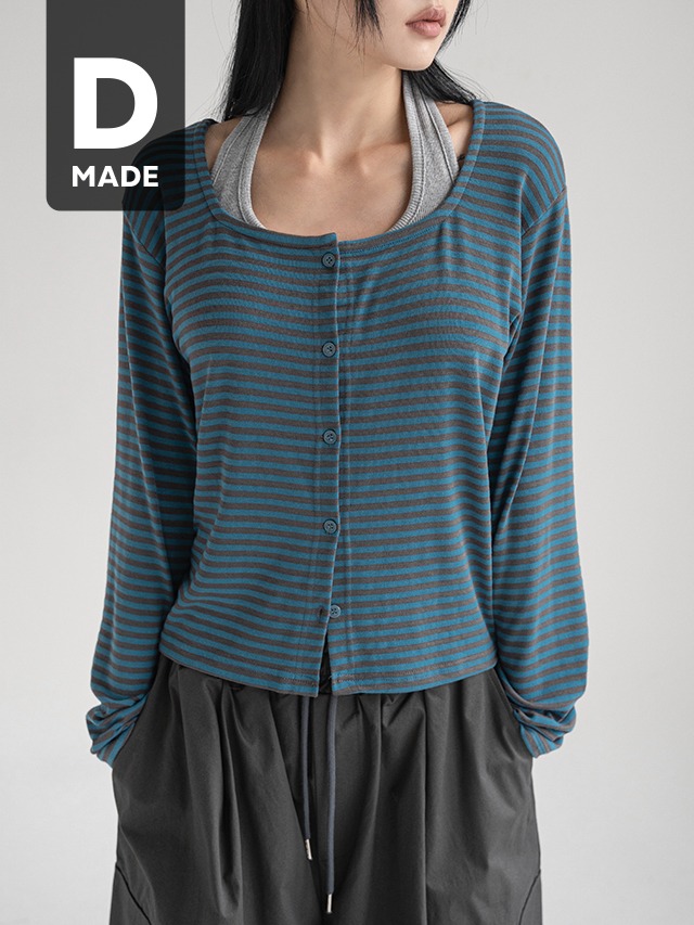 [1천장돌파][MADE] 빅사이즈 55-99 러스티 스트라이프 스퀘어넥 가디건