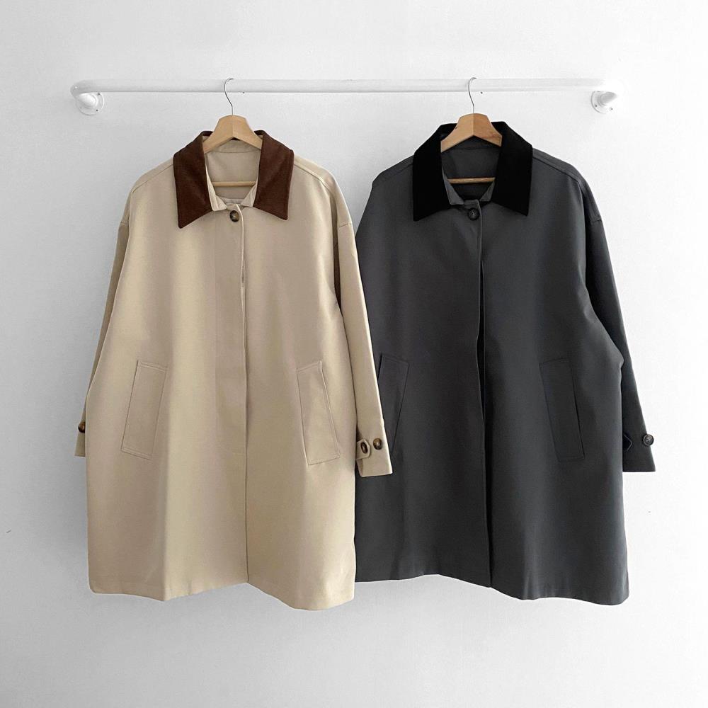 여자 카라넥 배색 단추 긴팔 심플 하프 코트