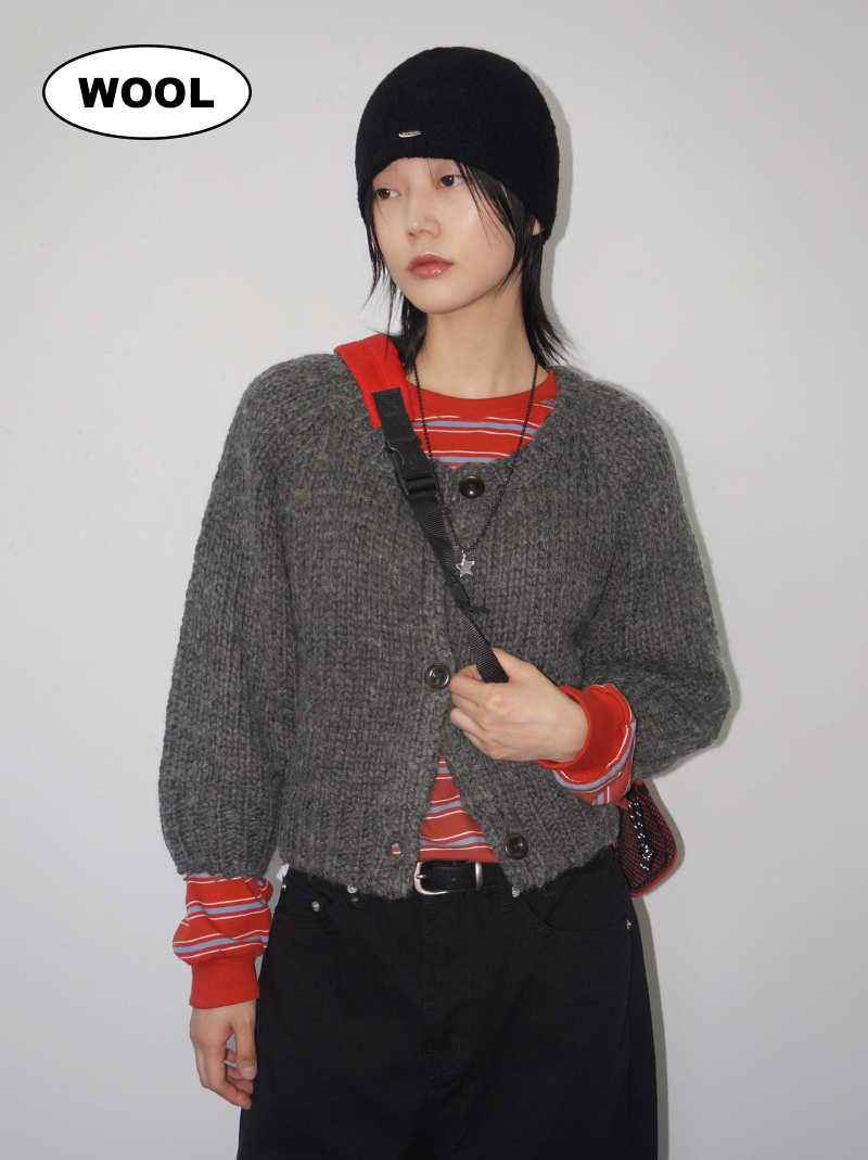 WOOL KNITTING SHORT CD (cream / charcoal)