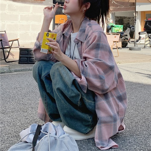 홍련화 오버핏 핑크 체크셔츠 남방 봄 가을 루즈핏 빅사이즈 레이어드 셔츠