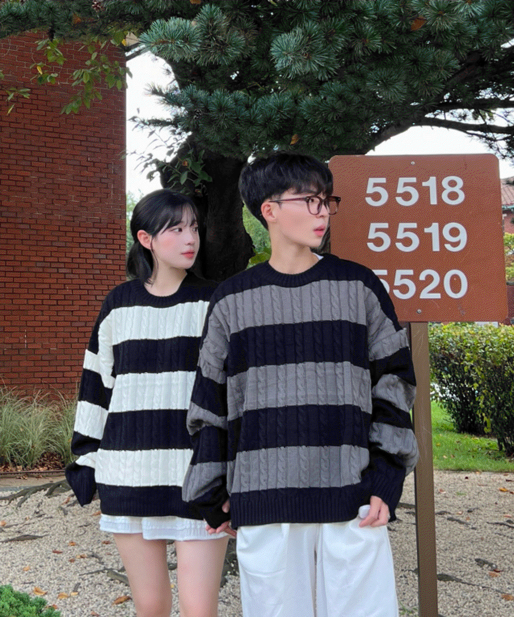 단독[세트가능/빅사이즈/4color] 남녀공용 AC 단가라 라운드넥 꽈배기니트 캉캉 미니스커트 코튼 와이드 팬츠 커플룩 시밀러룩 여행 가을 겨울