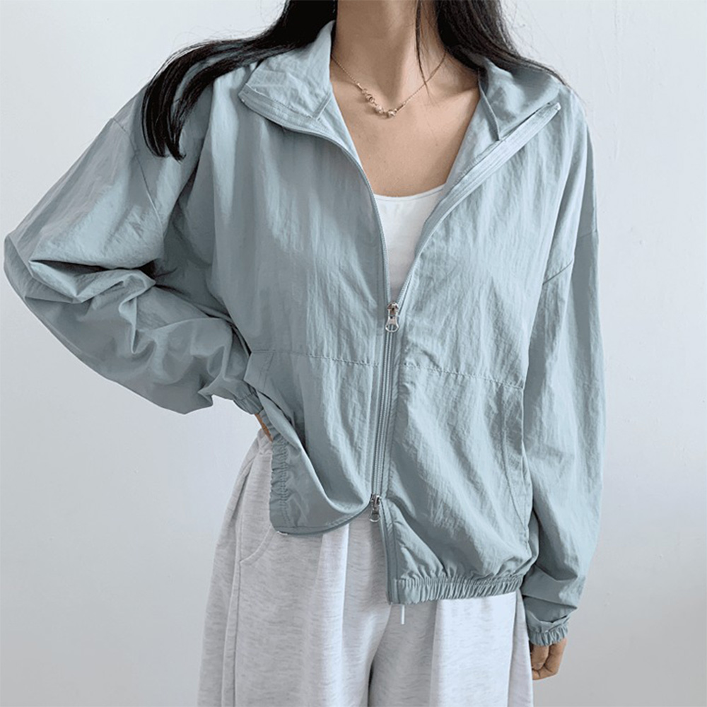 여자가을코디 나일론점퍼 검정잠바 허리고무줄