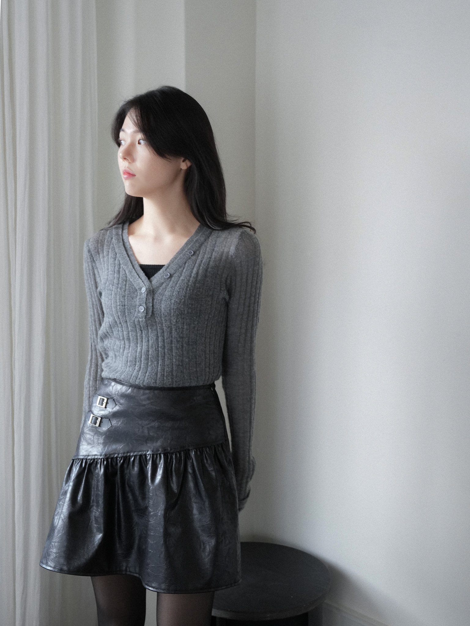 [NouArté] 시카고 버튼 니트 (브라운, 차콜, 핑크)