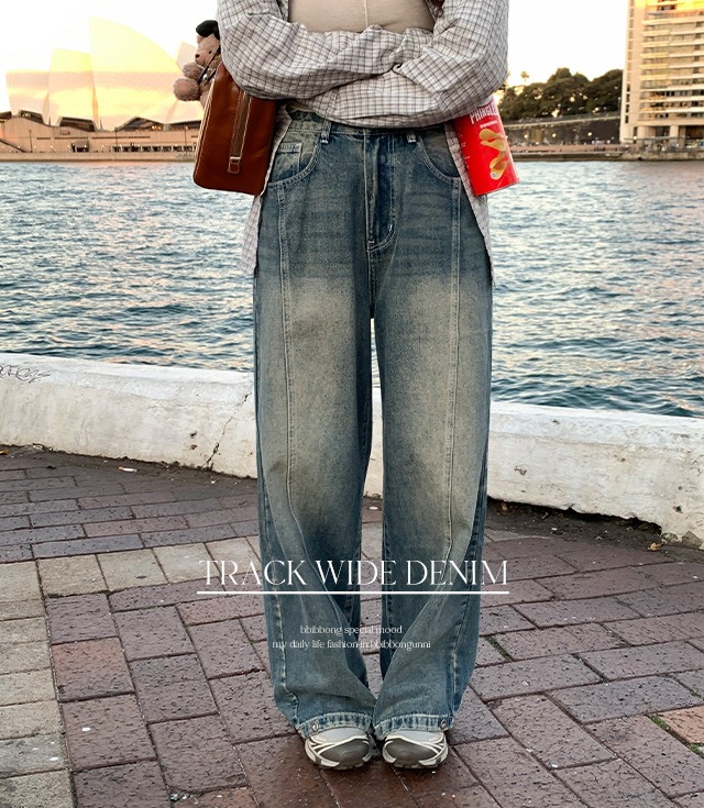 [~3XL/기장선택]롱브 트랙 와이드 데님팬츠(4color) [통조절 밑단조절 빅사이즈 플러스사이즈 숏 기본 롱 청바지 스트레이트핏 워싱 조거핏 단추]