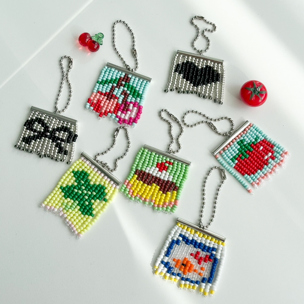 미니 비즈발 키링 만들기 도안 DIY 키트 재료 옷핀 7종 토마토 네잎클로버 어항 푸딩 체리 하트 리본 가방