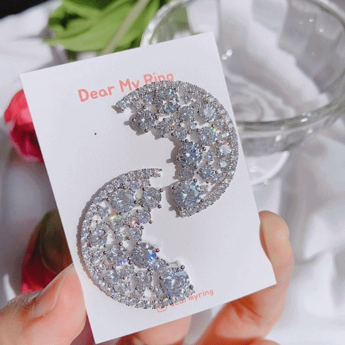 반달 유니크 볼드 큐빅 귀걸이 (실버, 골드)