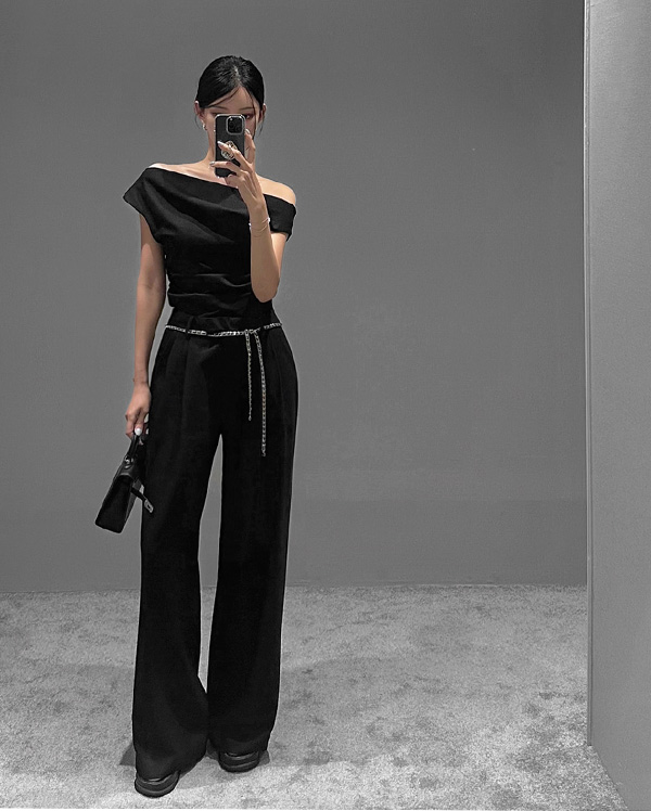 [당일배송] [차콜 M] 도브 핀턱 로우 와이드 팬츠