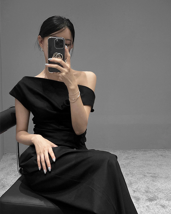 [당일배송] [블랙 S] 도브 언발 드레이프 탑