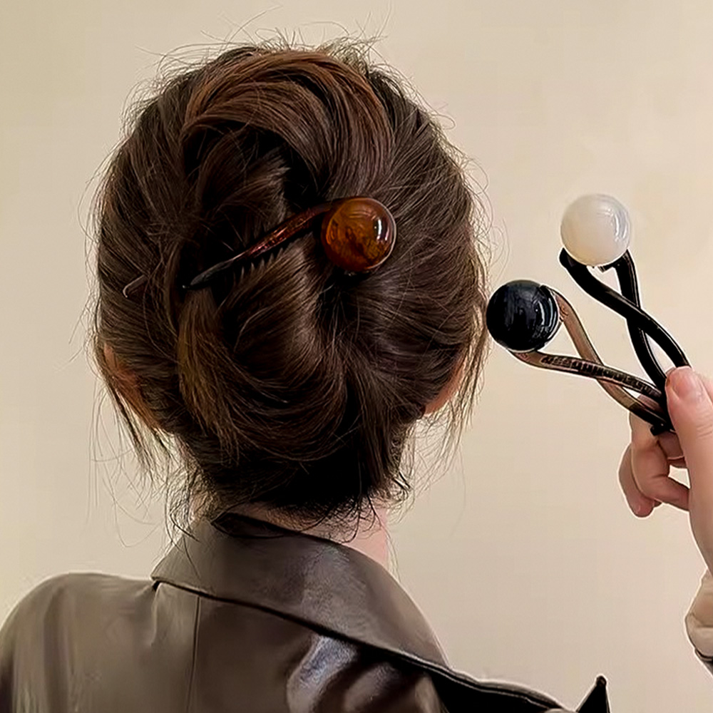 [당일출고] 마블 원형 반구 팬던트 포인트 꼬임 트위스트 라인 바나나 여성 헤어 집게핀 [아이보리 브라운 다크그레이] N972