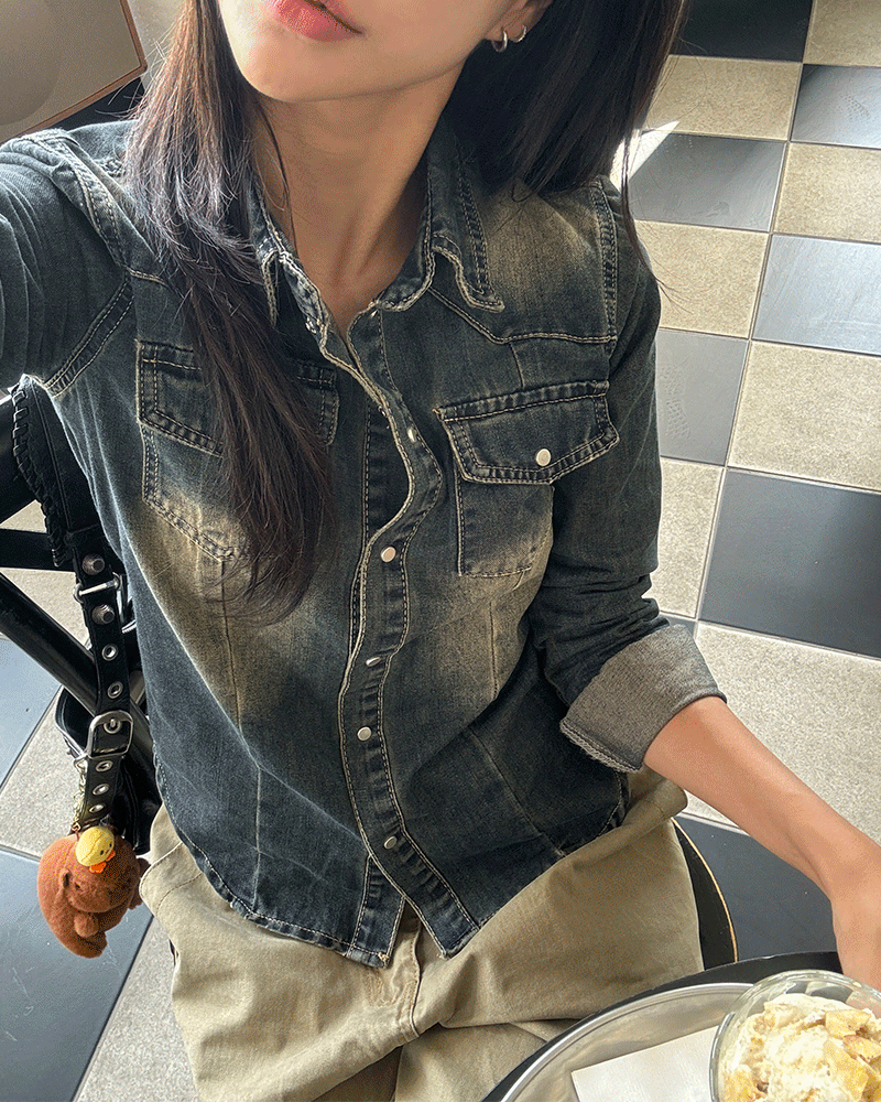 닐로 웨스턴 빈티지 워싱 슬림 긴팔 데님셔츠(2color)