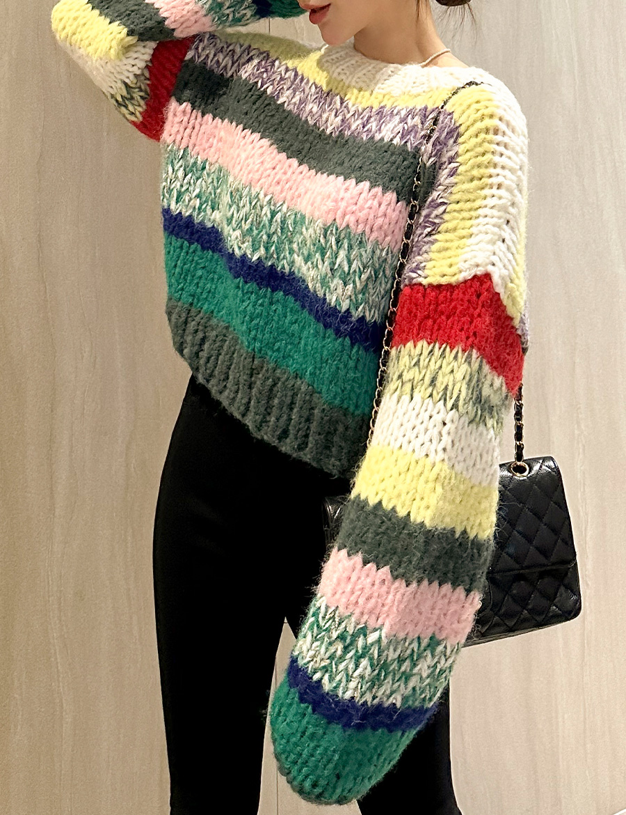 루즈핏 니트 스웨터 알록달록 무지개 긴팔 겨울
