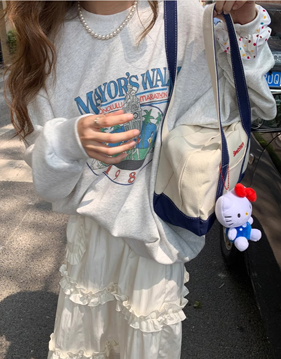 [🌈유니크패턴/ 일러스트/멜란지소재/루즈핏🎀캠퍼스룩/데일리룩🚛무배] 슬리피 런닝 일러스트 맨투맨 s161081