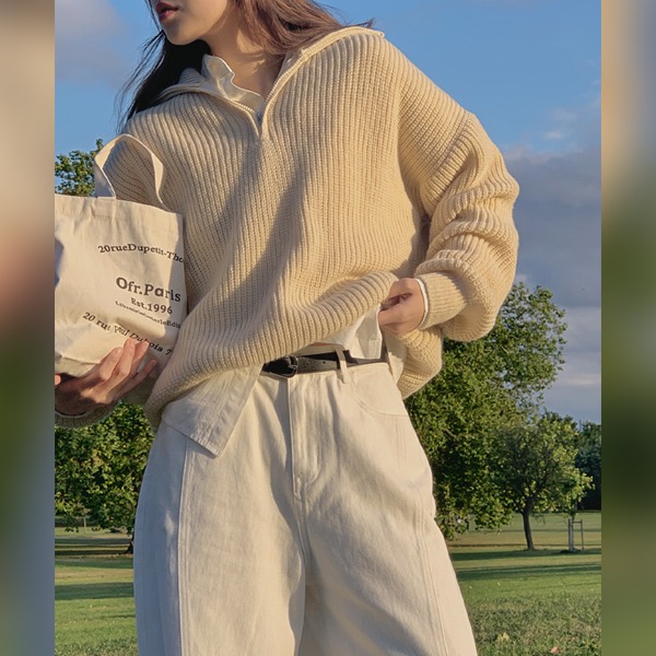 [도톰포근해🤎][휘뚤마뚤코디템] 디먼 하찌 반집업 긴팔니트티(44~99) (빅사이즈니트집업-가을신상-데일리룩-캐주얼룩-체형커버-페미닌룩-간절기코디-세라넥-카라넥-하이넥)