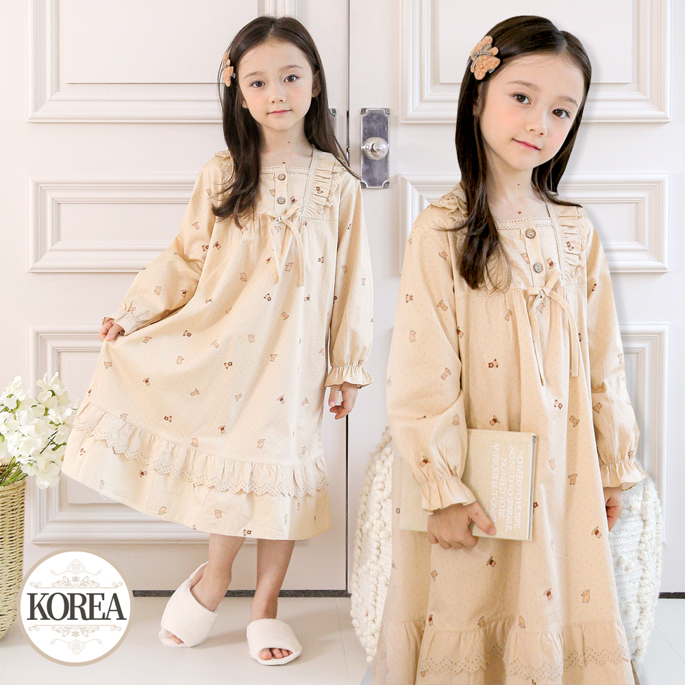 유아 아기 아동 아이 곰돌이 잠옷 여아 애기 공주 원피스 파자마 홈웨어 밤비D(순면)