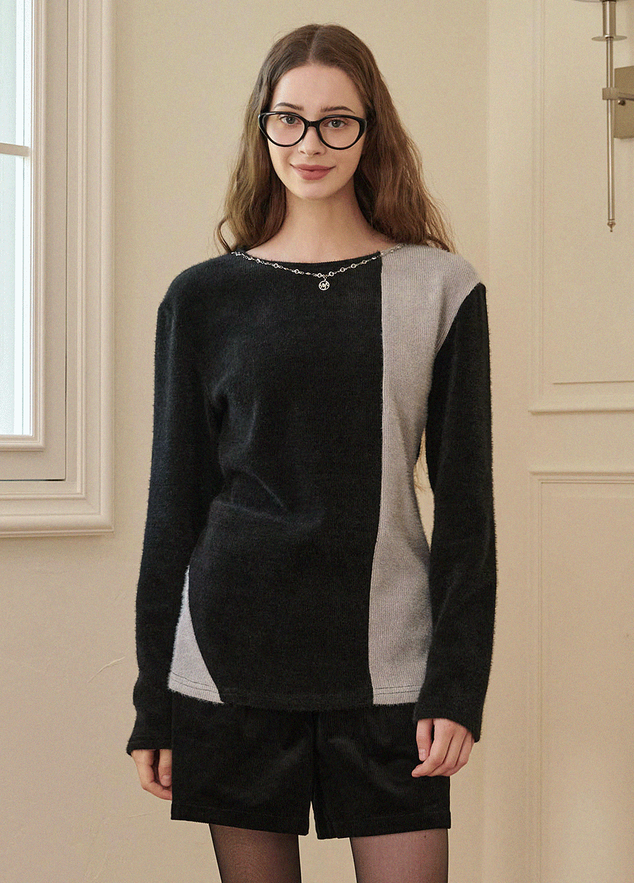 [44-120] Oblique M-Line Chain Knit 오블리크 엠-라인 체인 니트 (가을/봄/데일리룩/출근룩/캐주얼룩/데이트룩/페미닌룩/체인/엠라인/셔링/언발/롱기장/빅사이즈/자체제작)