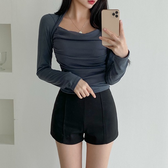 마피아매쉬T(3c) 망사레이어드티 볼레로티 크롭티 셔링티 쇄골강조 슬림핏티 쫄티 드레이프티
