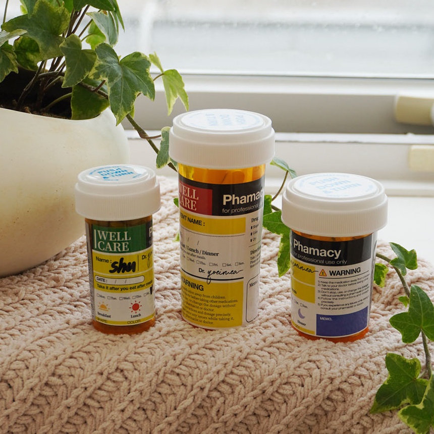 미드 감성 약통 약병 3size [휴대용 알약 통 밀폐 플라스틱 케이스 병 노란 오렌지 미니 영양제 비타민 소분]