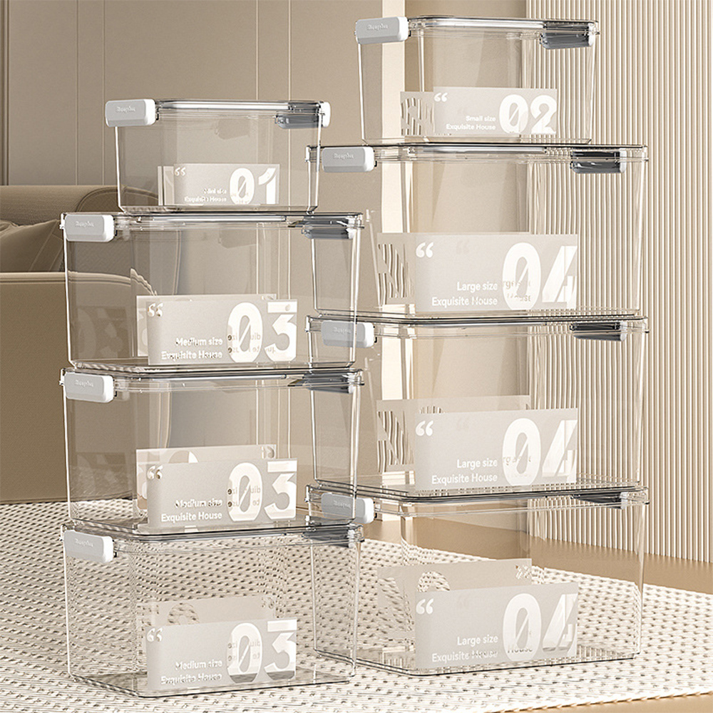 버클잠금! 완벽정리! 투명 다용도 손잡이 리빙박스 팬트리 정리함 4size