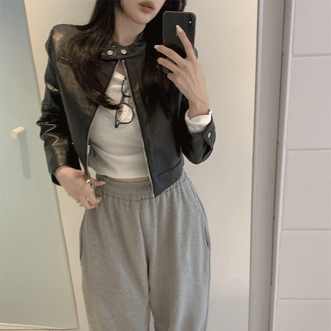[자체제작][봄신상] 드라이빙 크롭 레더 자켓 -2 color