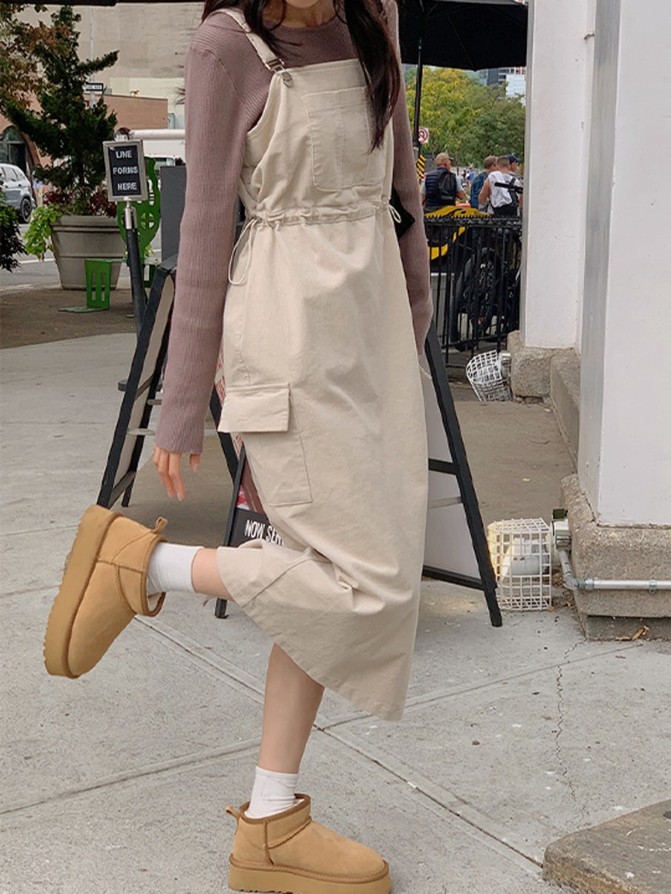 [1천장 돌파✨] [44-120] 키멜즈얼 코듀로이 스트링 멜빵 롱 원피스 (끈조절)( 가을-데일리룩-데이트룩-러블리룩-캠퍼스룩-빅사이즈-120사이즈-자체제작-코듀로이원피스-멜빵원피스-롱원피스 )